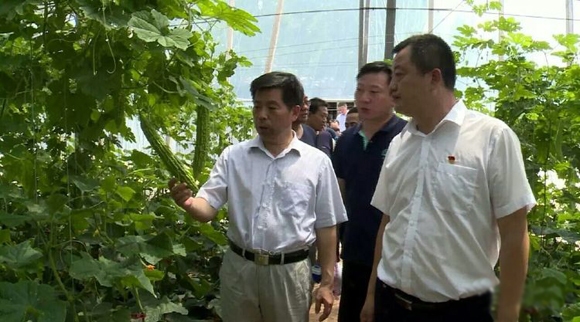 在沙河乡果角村蔬菜大棚,王清华详细了解蔬菜种植规模、种类、技术服务等情况。