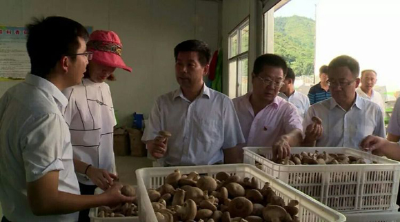 在杜关镇信念集团扶贫产业基地香菇生产车间,王清华详细了解香菇生产的分拣、灭菌、冷藏和市场销售等情况。